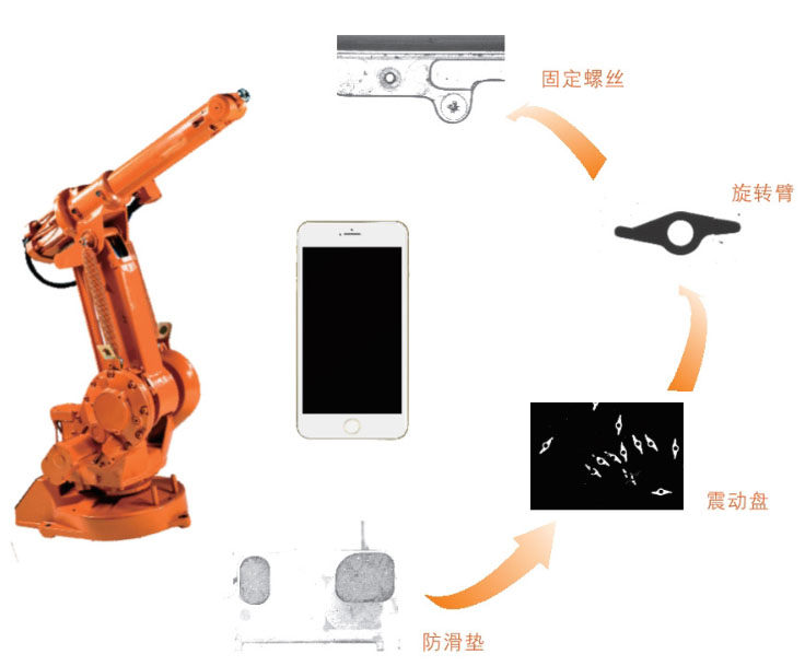 手機(jī)制造行業(yè)的高效性,要求加工速度與精度的不斷提高,引入全自動(dòng)組裝生產(chǎn)線成為必要的應(yīng)用需求。該項(xiàng)目通過”MicroPos“機(jī)械手視覺定位算法引導(dǎo)6軸機(jī)械手從料盤或料帶上拾取零部件進(jìn)行精確的手機(jī)組裝。