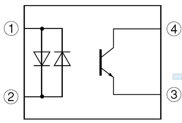 圖三 光電耦合器之內部結構圖 雙發(fā)光二極管輸入 三極管接收型 4腳封裝