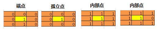 5.循環(huán)所有的前景像素點,對符合如下條件的像素點標(biāo)記為刪除:
