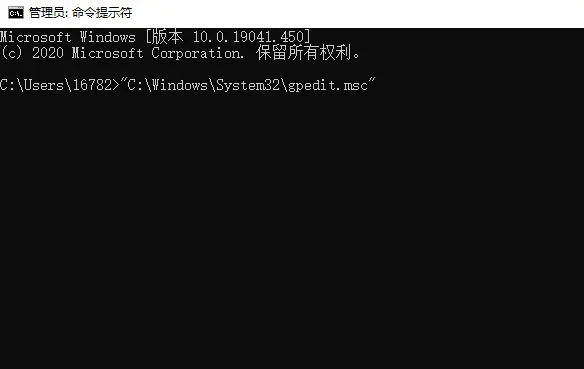第二步:在cmd控制臺輸入一下路徑然后回車機會打開本地組策略編輯器(注意要輸入雙引號)