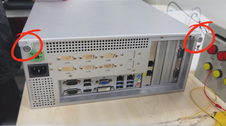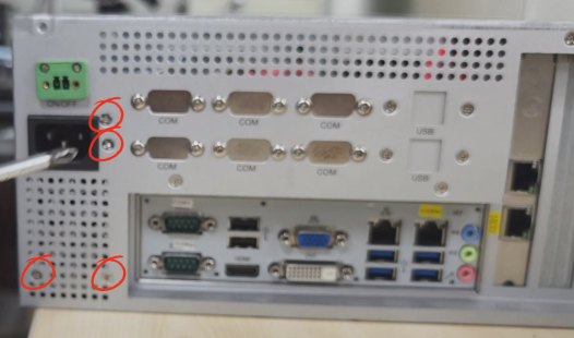 1.首先卸下工控機(jī)擋板的兩顆螺栓,將工控機(jī)的擋板拆下。