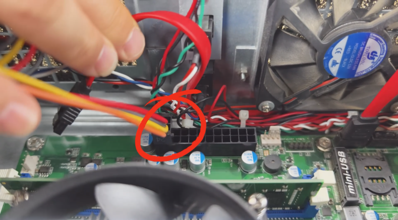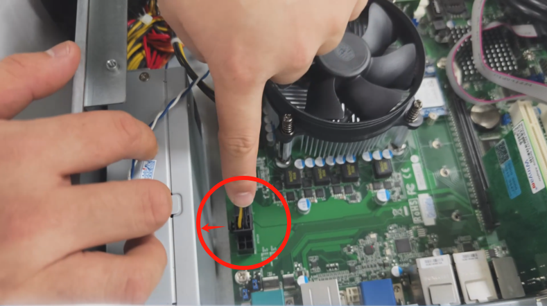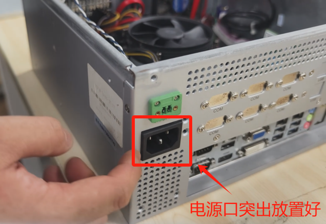 4.下一步將電源輕輕放進(jìn)工控機(jī),注意電源口位置要對(duì)接好,突出放置。