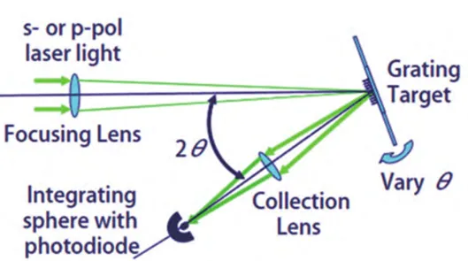 機(jī)械運(yùn)動(dòng)式變角度測量法通常使用步進(jìn)式電機(jī)帶動(dòng)轉(zhuǎn)臂、樣品臺(tái)、反射鏡旋轉(zhuǎn),或帶動(dòng)透鏡垂直光路光軸的方向上移動(dòng)從而改變光的角度,利用探測器采集樣品散射光信息進(jìn)行下一步的分析。例如測角光學(xué)散射儀(GOSI),通過旋轉(zhuǎn)樣品臺(tái)改變光的入射角,對(duì)目標(biāo)的s偏振和p偏振的鏡面反射進(jìn)行面內(nèi)測量。