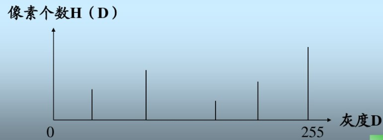 圖像的灰度直方圖是灰度級(jí)的函數(shù),描述的是圖像中具有該灰度級(jí)的像素的個(gè)數(shù):其中,橫坐標(biāo)是灰度級(jí),縱坐標(biāo)是該灰度級(jí)出現(xiàn)的頻率。