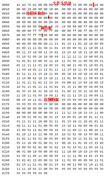 · 最后是位圖的數(shù)據(jù) 0x76-0x275