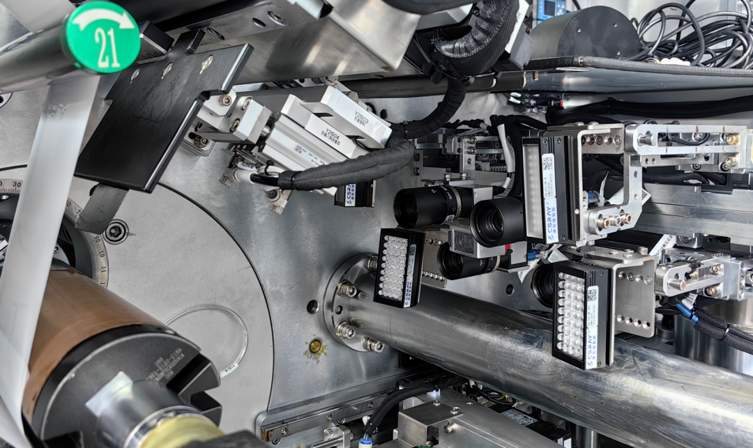 在鋰電池的電極涂布環(huán)節(jié),機(jī)器視覺系統(tǒng)可以通過實時監(jiān)測電極涂布的厚度、均勻度和表面缺陷。同時分條、制片、卷繞、疊片環(huán)節(jié),機(jī)器視覺系統(tǒng)可以實現(xiàn)對齊度、對位等檢測