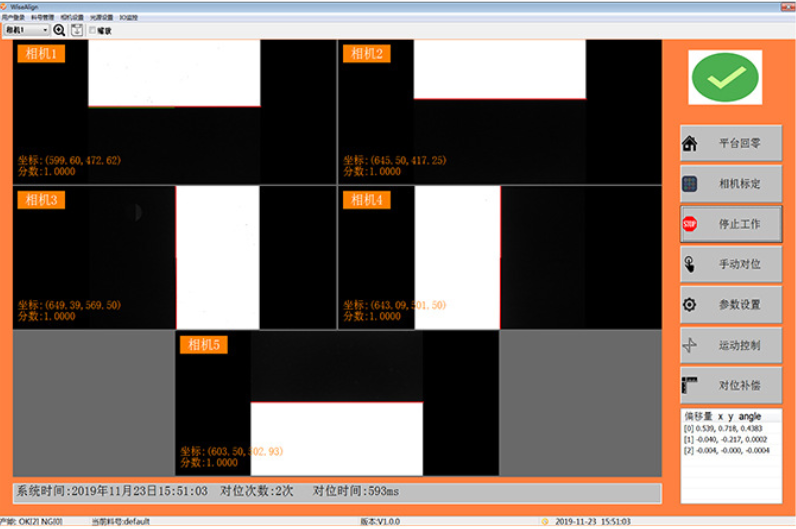 在玻璃蓋板的絲印應(yīng)用中,較多應(yīng)用的是5CCD與6CCD,WiseAlign-5C相機(jī)自對位系統(tǒng)與WiseAlign-6C相機(jī)自對位方案在工業(yè)自動化領(lǐng)域內(nèi)應(yīng)用極為廣泛,機(jī)構(gòu)工藝簡單易實現(xiàn),軟件操作簡單容易上手。對于玻璃蓋板這一對精度要求極高的應(yīng)用場景,WiseAlign系列軟件能夠確保對位精度達(dá)到驚人的±0.02mm級別,這一精度標(biāo)準(zhǔn)遠(yuǎn)超行業(yè)平均水平,有效滿足了高端電子產(chǎn)品對品質(zhì)與精度的極致追求。