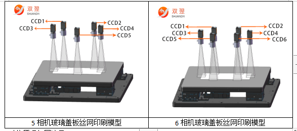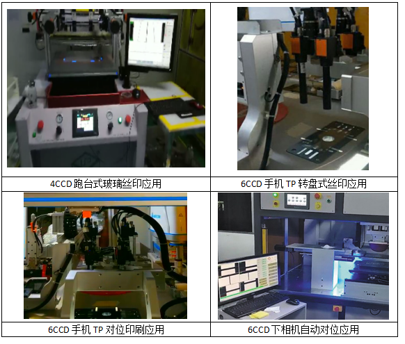 此方案適用領(lǐng)域為:透明材質(zhì)的FPC、玻璃、亞克力,以及非透明材質(zhì)都可適用,而5CCD、6CCD視覺對位絲印機(jī)系統(tǒng),主要更多的應(yīng)用在玻璃絲印應(yīng)用領(lǐng)域。