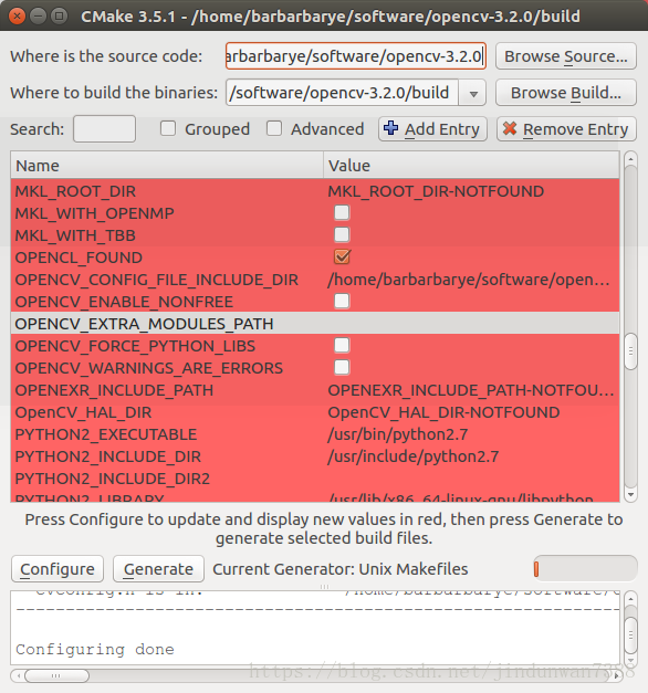 這里我主要使用CMake-gui這個圖形化界面進行安裝(因為自己對ubuntu的命令不太熟悉…總是出錯但又不知道怎么解決掉)。當然,也可以用終端直接輸入命令操作,可以參考其他博客,這里就不再討論。