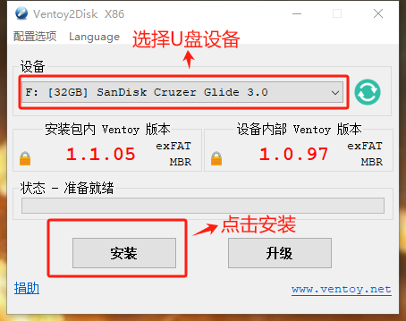 注意:安裝Ventoy,U盤會被格式化,請拿一個沒有用過或者先把U盤中的數(shù)據(jù)拷貝出來。
