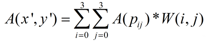 浮點型坐標點的插值為其周圍4*4整型坐標點像素值的加權(quán)和: