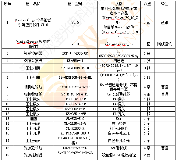 配置清單如下: