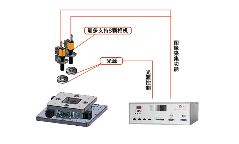 在實(shí)際的液晶電視生產(chǎn)線中,MasterAlign視覺(jué)系統(tǒng)采用多相機(jī)協(xié)同工作的架構(gòu)。一個(gè)相機(jī)負(fù)責(zé)精準(zhǔn)定位上層組件的位置,另一個(gè)相機(jī)則同步定位下層組件。