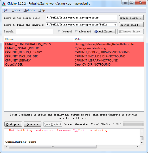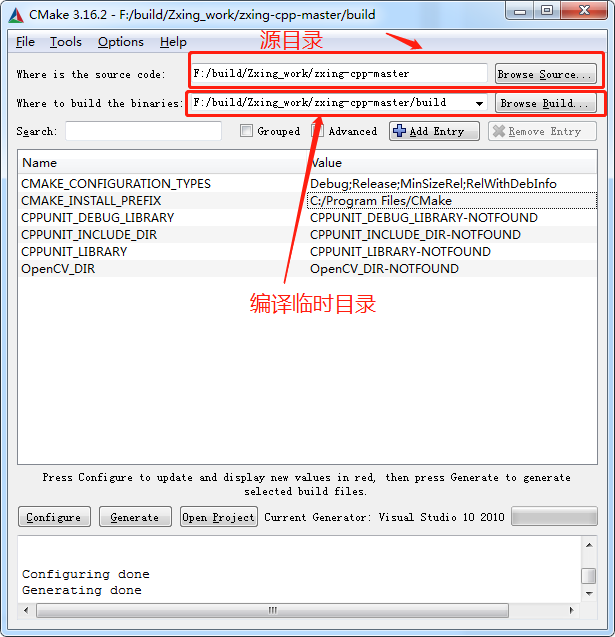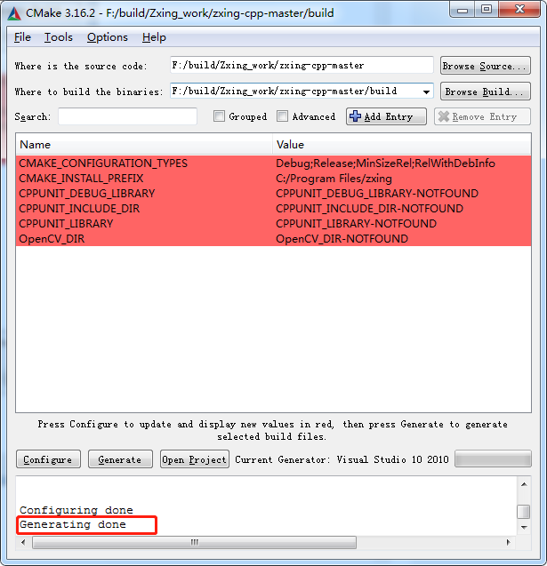 點(diǎn)擊“Generate” 然后cmake自動生成VS工程。如下狀態(tài)顯示 Generate Done