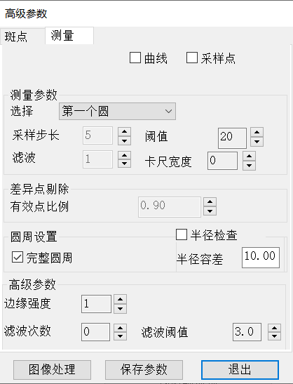 這兩個(gè)參數(shù)是組合使用的,它們起到剔除差異點(diǎn)的作用,提高擬合圓的準(zhǔn)確性。