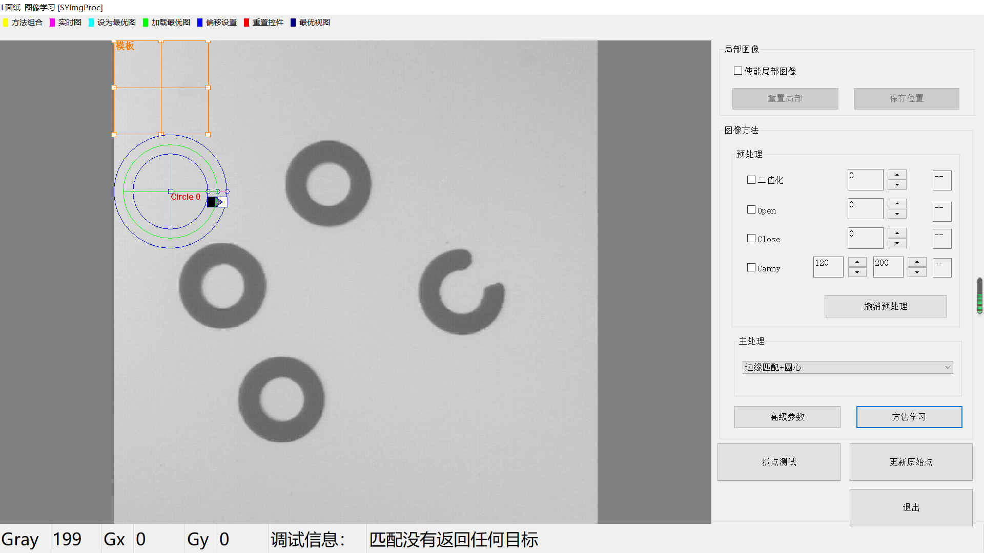 點(diǎn)擊【方法學(xué)習(xí)】后,邊緣匹配+圓心方法的所有信息將被保存,并自動(dòng)進(jìn)行圖像處理,相關(guān)的信息將顯示。