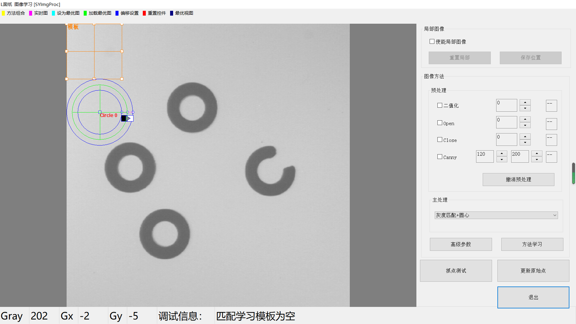 點擊【方法學習】后,灰度匹配+圓心 方法的所有信息將被保存,并自動進行圖像處理,相關(guān)的信息將顯示。