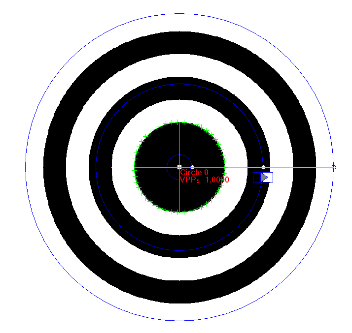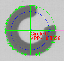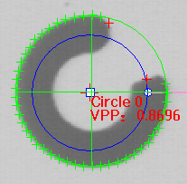 該參數(shù)表示參與擬合圓的有效點數(shù)量占總測量路徑數(shù)量的百分比。由于邊緣殘缺或部分邊緣點被剔除等情況,使得參與擬合圓的邊緣點數(shù)目減少,但不能低于該參數(shù)值,否則測量失敗。下圖中,有效點比例VPP:0.8182