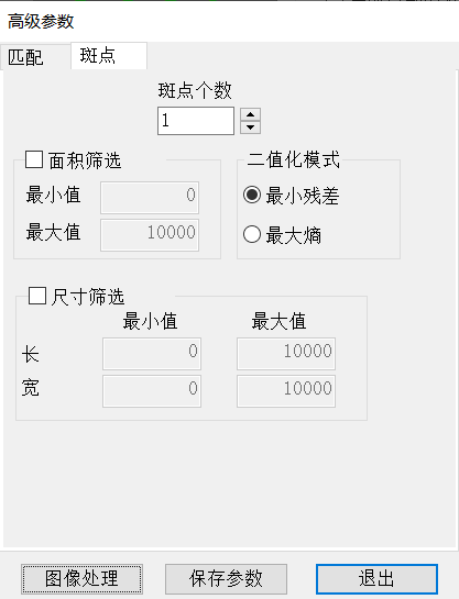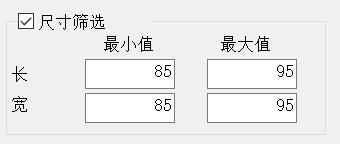 通過(guò)設(shè)置尺寸的最小值、最大值,進(jìn)行斑點(diǎn)篩選。尺寸(長(zhǎng)、寬)在最小值、最大值之間的斑點(diǎn)被保留,之外的斑點(diǎn)被剔除。