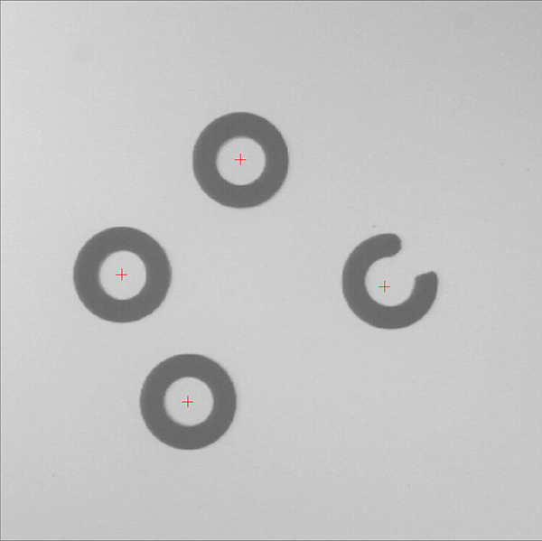 目標(biāo)區(qū)域內(nèi)的斑點(diǎn)個(gè)數(shù)必須大于等于設(shè)定的個(gè)數(shù),否則報(bào)錯(cuò)。所有的斑點(diǎn)坐標(biāo)求平均值作為結(jié)果。以下舉例: