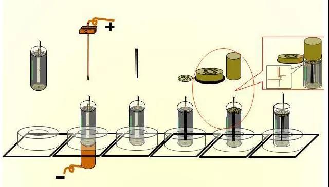 組裝后的電池,被給予一定的電流,使電池正負(fù)極活性物質(zhì)被激發(fā),最后使電池具有放電能力的電化學(xué)過(guò)程稱(chēng)為化成,電池只有經(jīng)過(guò)化成后才能作為電源使用。