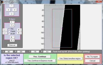 ImageJ 需要下載安裝 Slanted Edge Modulation Transfer Function 插件,需要注意的是只能測量豎直傾斜邊緣,從左至右由黑變白的矩形框,具體選項(xiàng)設(shè)置參考如下,sensor size單位是mm。