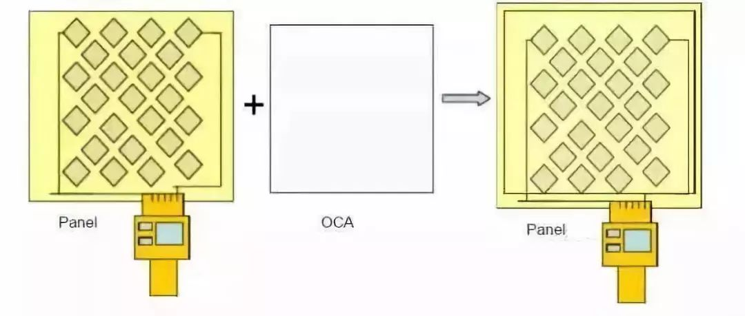 將FPC bonding后的Sensor與cover glass貼合在一起,依據(jù)所用膠材的不同,目前有兩種貼合方式,一種是OCA貼合,一種是OCR貼合。