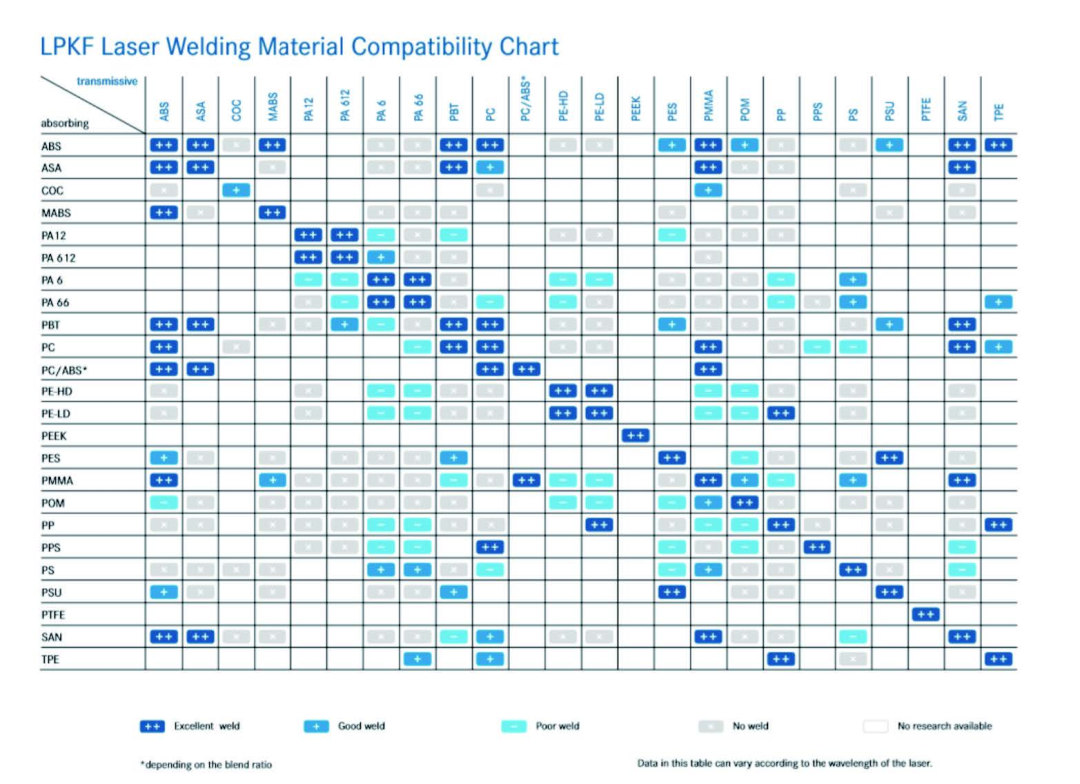 成功的激光塑料焊接加工過程的必要條件是兩個部件分別是激光透光塑料和激光吸光材料,這樣才構(gòu)成了多種可能性。