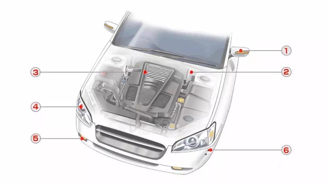 ① 車用閃光燈:防水、提高遮光性② 引擎蓋隔壁:隔熱、防噪音③引擎封條/電池封條:吸收震動、防止物體碰撞噪音④ 汽車前燈:防水、提高遮光性⑤ 霧燈:防水、提高遮光性⑥ 邊角感應(yīng)器&邊角照相機(jī):防塵、防水