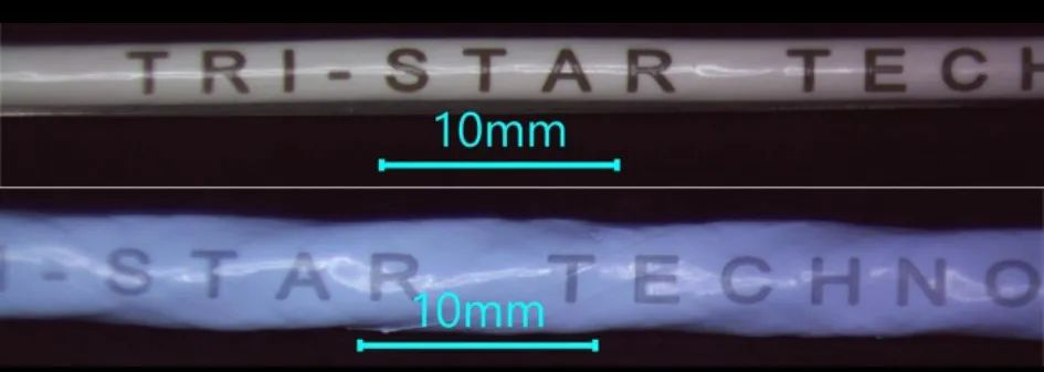 圖2. ETFE(頂部)和PTFE(底部)電線上的紫外激光打標(biāo)