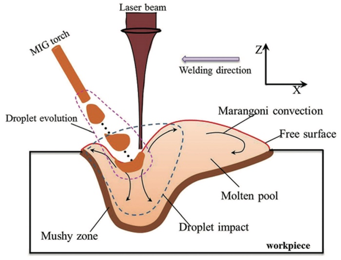 激光-電弧復(fù)合焊接兼具了激光焊接和電弧焊的優(yōu)點:一是在雙熱源的作用下,焊接速度得以提高,熱輸入量變小,焊縫變形量小,保持了激光焊接的特點;二是具有更好的橋接能力,裝配間隙容忍度更大;三是熔池的凝固速度變慢,有利于消除氣孔、裂紋等焊接缺陷,改善熱影響區(qū)組織和性能;四是由于電弧的作用,其能夠焊接高反射率、高導(dǎo)熱系數(shù)的材料,應(yīng)用材料的范圍更廣。