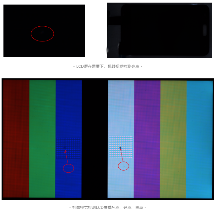 點(diǎn)燈檢測(cè)是在屏幕點(diǎn)亮的情況下進(jìn)行的自動(dòng)化光學(xué)檢測(cè)。用于檢測(cè)液晶屏幕顯示中的暗點(diǎn)、輝點(diǎn)、暗線、輝線及Mura 等缺陷。隨著FPD行業(yè)產(chǎn)品屏幕分辨率從HD到2k再到4k,點(diǎn)燈檢測(cè)對(duì)相機(jī)分辨率的要求也愈來愈高,目前通常采用29M及以上分辨率的相機(jī)進(jìn)行檢測(cè)。新一代OLED高像素密度顯示器則對(duì)質(zhì)量檢測(cè)的分辨率和靈敏度提出了更高的要求。
