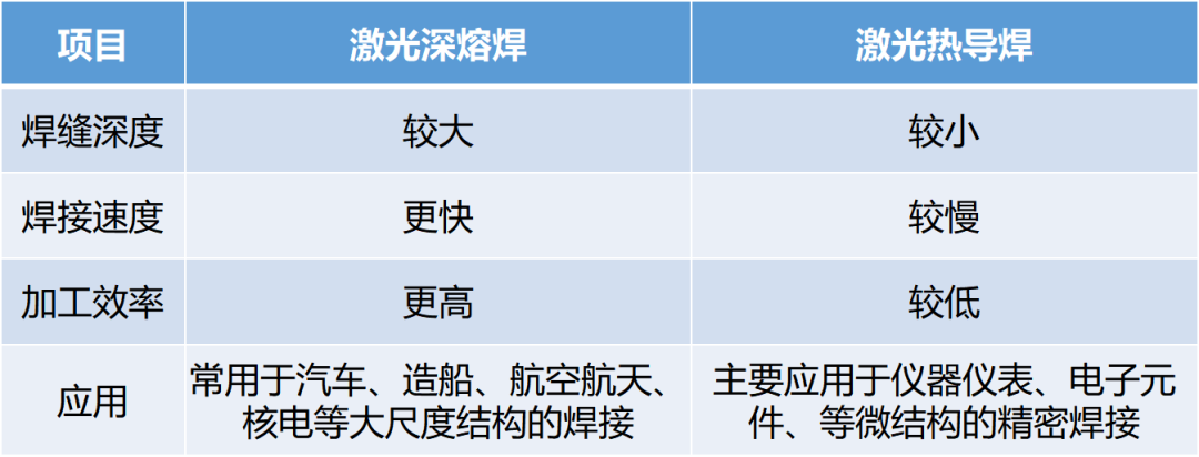 由于匙孔的存在,激光束在照射到匙孔內(nèi)部后,經(jīng)過散射等作用,會(huì)增加材料對(duì)激光的吸收,促進(jìn)熔池的形成,兩種焊接方式對(duì)比如下:
