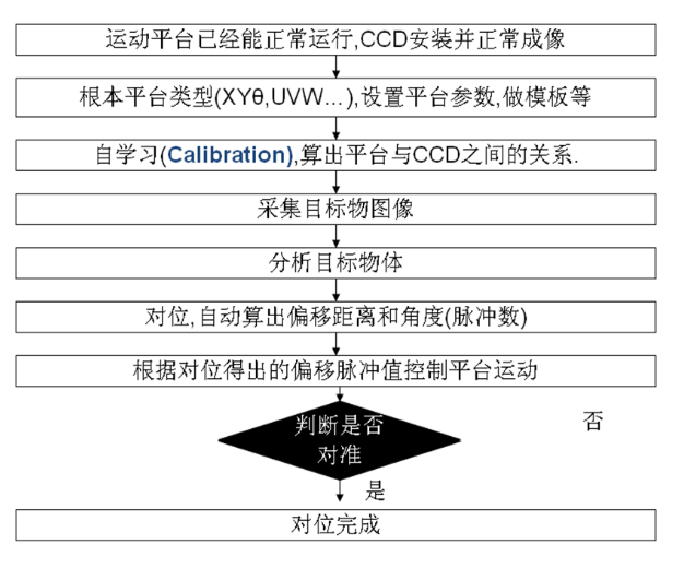 具有自動調(diào)整功能,相機安裝時,不需要很麻煩地吻合X、Y坐標以及進行相機->平臺坐標轉(zhuǎn)換的復雜運算。若是檢測Mark點變化后,只需執(zhí)行自動調(diào)整,就可以簡單恢復到模板的位置,從而保證對位精度。若是產(chǎn)品變換,導致Mark點變換后,只需要重新對新的Mark點進行模板學習,即可完成對位操作。使得產(chǎn)品品種變更后實現(xiàn)自動對位也變得十分簡單。