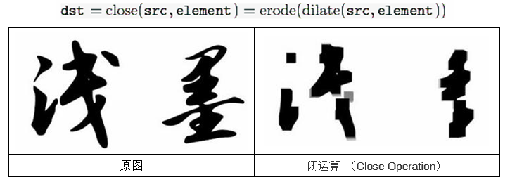 先膨脹后腐蝕的過(guò)程稱為閉運(yùn)算(Closing Operation),其數(shù)學(xué)表達(dá)式如下: