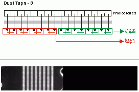通常是在高解析或?yàn)榱颂岣週ine-scan Camera 傳輸速度的設(shè)計(jì), 它的特性是整個(gè)線性CCD的每個(gè)光電二極管在感光后分成奇數(shù)及偶數(shù)將光轉(zhuǎn)成電荷訊號分成兩組將數(shù)據(jù)傳遞出去。