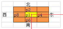 第二次迭代則相反,會移去西北的邊界點,注意p2,p8出現(xiàn)了2次,就是說它們有一個為0,則c,d就滿足。