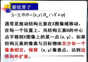 膨脹運算思路:定義結構元素(與模板類似),結構元素在整幅圖像中移動,移動到每個像素點上,如果結構元素與圖像上對應像素點的像素值至少有一個像素相等時,保留這個像素點的值。