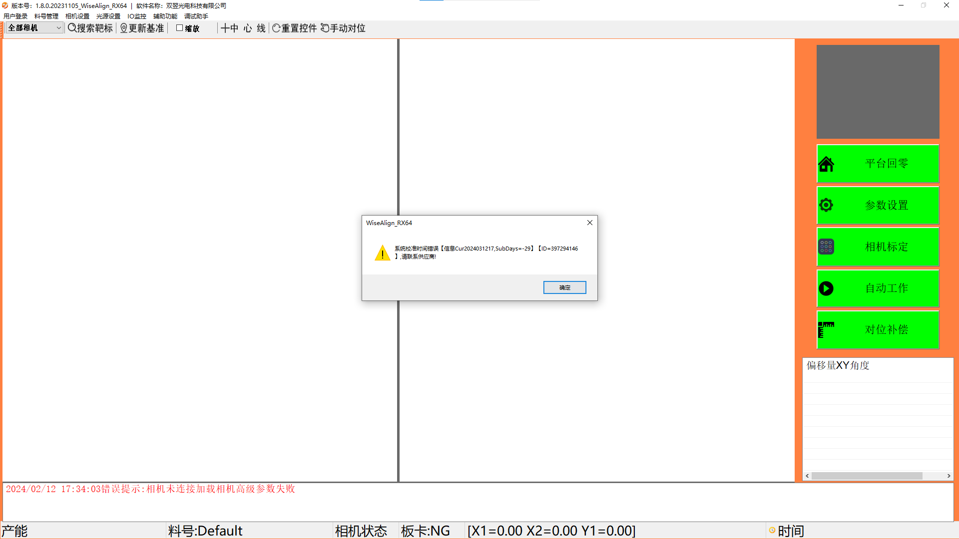 WiseAlign視覺對位軟件提示系統(tǒng)校準(zhǔn)時間錯誤解決方案