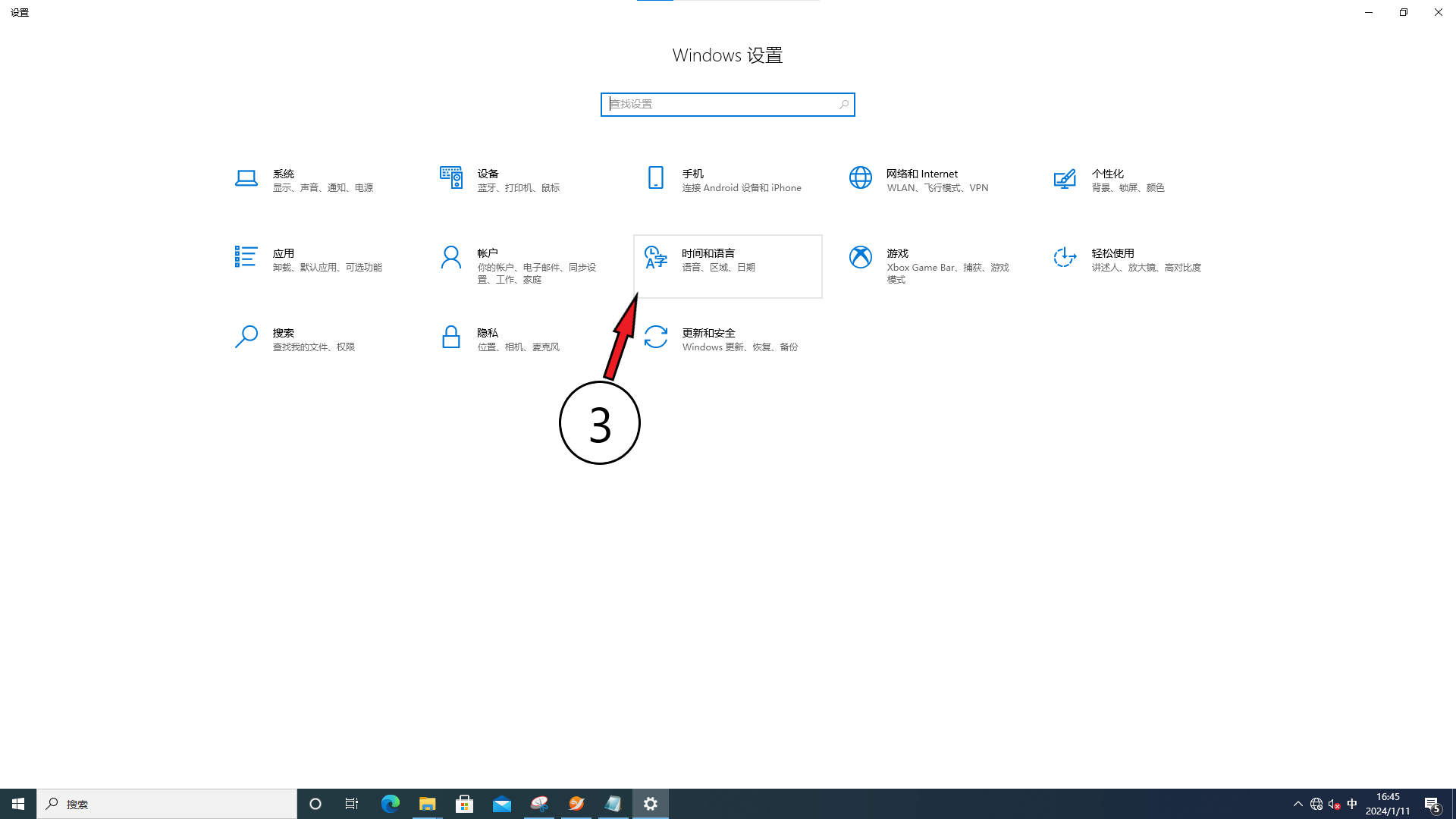 3、點(diǎn)擊“時間與語言”