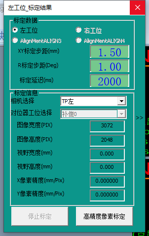 注釋:標(biāo)定計(jì)算出來的視野寬,高要和實(shí)際視野接近,否則標(biāo)定結(jié)果就是錯(cuò)誤的,另外X像素精度和Y像素精度要接近,否則標(biāo)定結(jié)果就是錯(cuò)的。