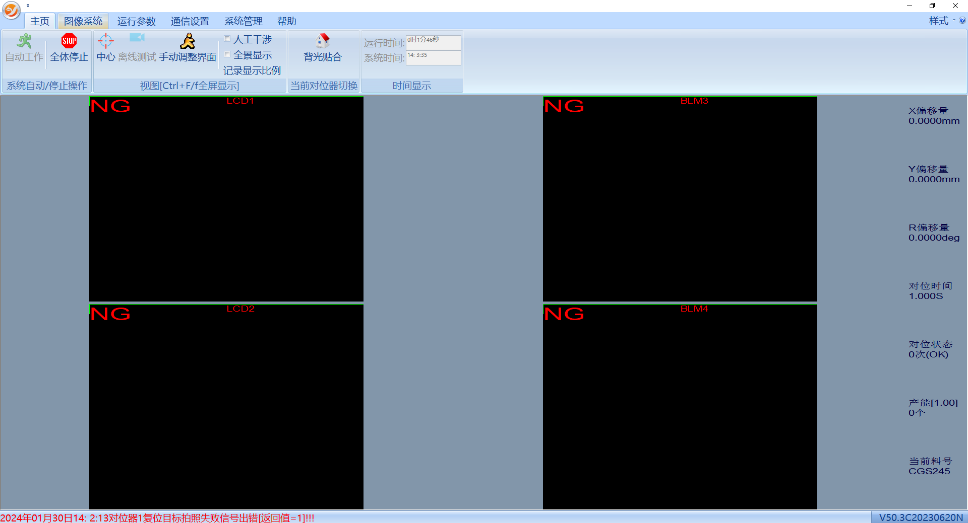 圖像系統(tǒng)包括主模板登錄、抓取mark測(cè)試、候補(bǔ)模板登錄、離線導(dǎo)圖、手動(dòng)對(duì)位、相機(jī)設(shè)置。