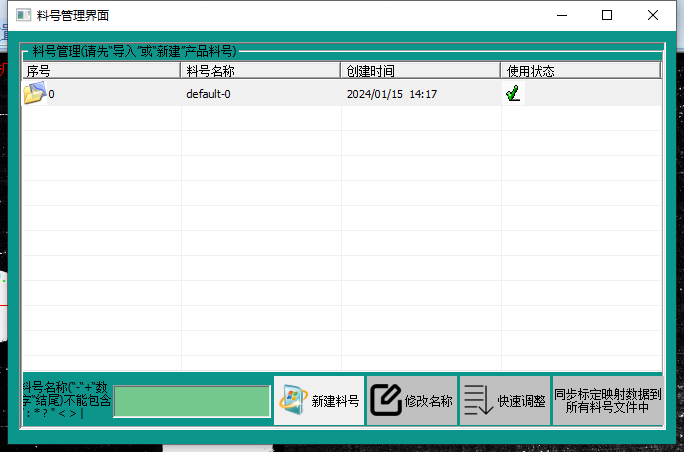 3:在框內(nèi)填入需要新建的料號(hào)名稱,后點(diǎn)擊“新建料號(hào)”,會(huì)創(chuàng)建一個(gè)新的料號(hào),并將當(dāng)前使用的料號(hào)所有數(shù)據(jù)復(fù)制到新料號(hào)內(nèi)。點(diǎn)擊“修改名稱”會(huì)將當(dāng)前選擇的料號(hào)名稱改為您所填入的新料號(hào)名稱。
