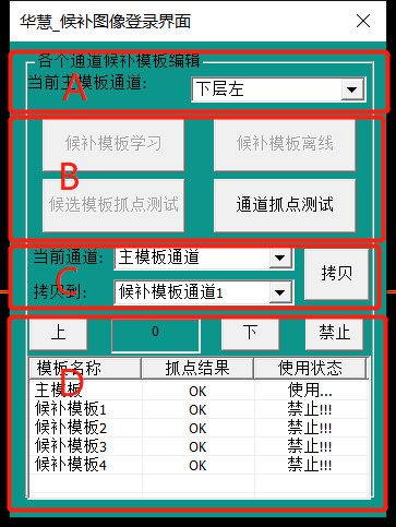 區(qū)域D:候補(bǔ)模板抓點(diǎn)結(jié)果以及使用狀態(tài);候補(bǔ)模板4是專門用作標(biāo)定或者映射時(shí)用。