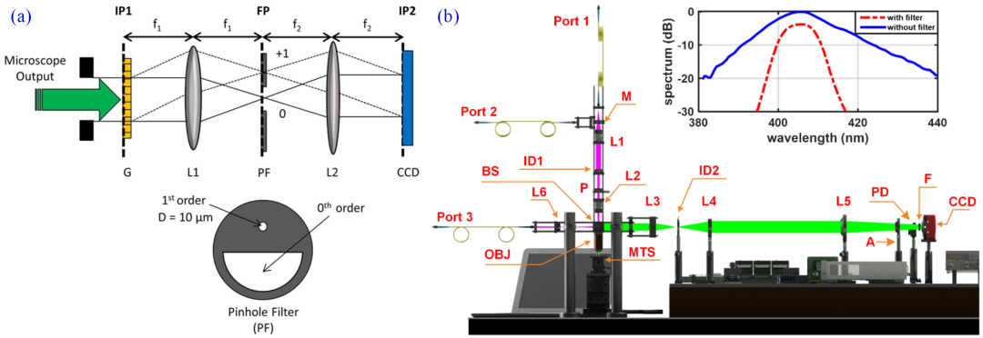 圖4 基于相位的光學缺陷檢測系統(tǒng)。(a)共光路衍射相位顯微鏡;(b)光學偽電動力學顯微鏡