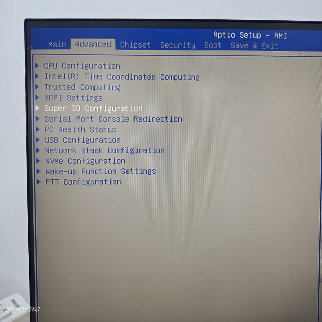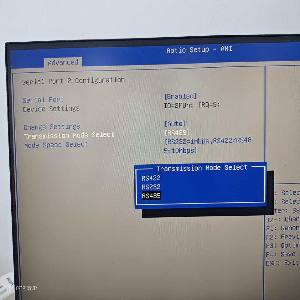 2、在工控機(jī)的BIOS中設(shè)置端口通信方式(開機(jī)時重復(fù)按delete鍵進(jìn)入BIOS)