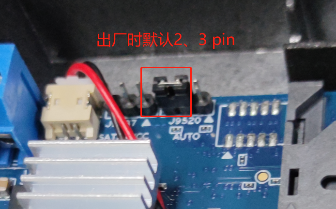2、找到J9520,出廠默認(rèn)是接了2、3 PIN,不會上電自動開機,需要更換成1、2 PIN