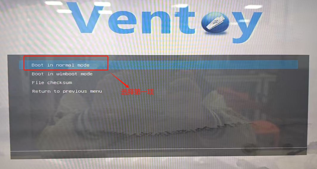 進(jìn)入系統(tǒng)選擇模式安裝,選擇第一項(xiàng)(正常模式安裝),并按鍵盤上的回車鍵(Enter)