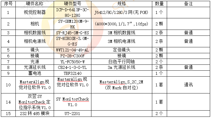 配置清單如下:
