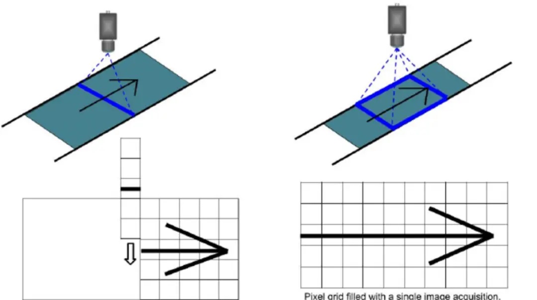 面陣相機的像素以矩陣形式排列,可以同時捕捉圖像的所有部分,這種方式使得它在靜態(tài)或低速場景下表現出色。